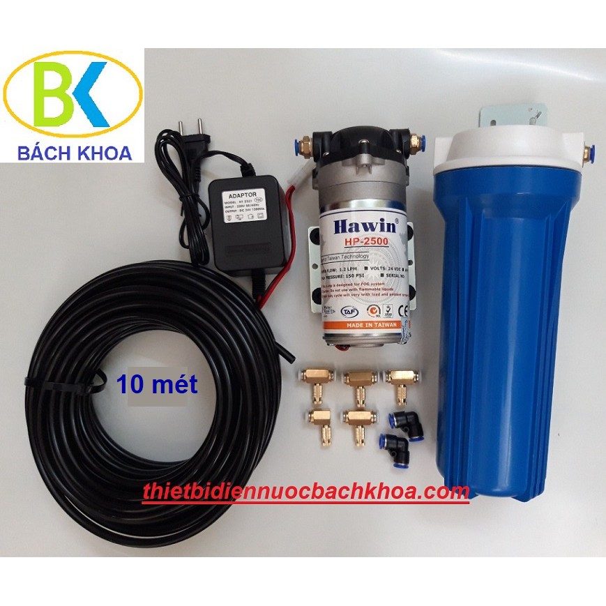 Giới thiệu Bộ phun sương 5 béc bơm Đài Loan HP-2500, 10m dây, 1 ly lọc