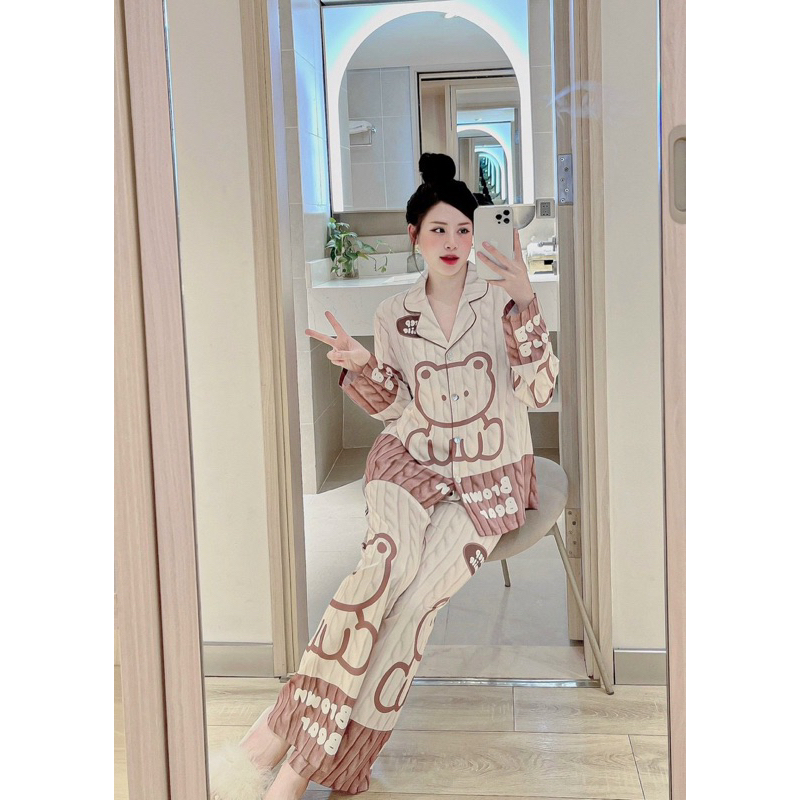 Giới thiệu Bộ pijama lụa cao cấp Quảng Châu cộc - dài bear