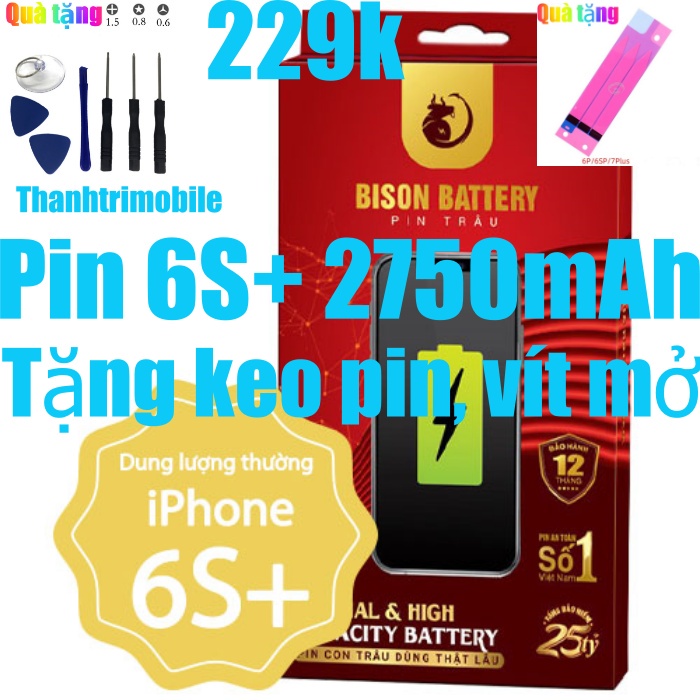 - Thông tin Pin: Pin 6s Plus Con Trâu dung lượng: 2750mAh Lõi Pin Polymer lithium ion+ nhiều lớp, an toàn Chu kỳ xạc lên đến 800-1000 lần sạc - xả Lõi Pin Chất lượng cao, chịu được nhiệt độ cao, hạn chế chai phù Pin có đầy đủ chứng chỉ EU, JA, CE, FE, chứng chỉ TEST Hiệu Năng và chứng chỉ hợp quy.