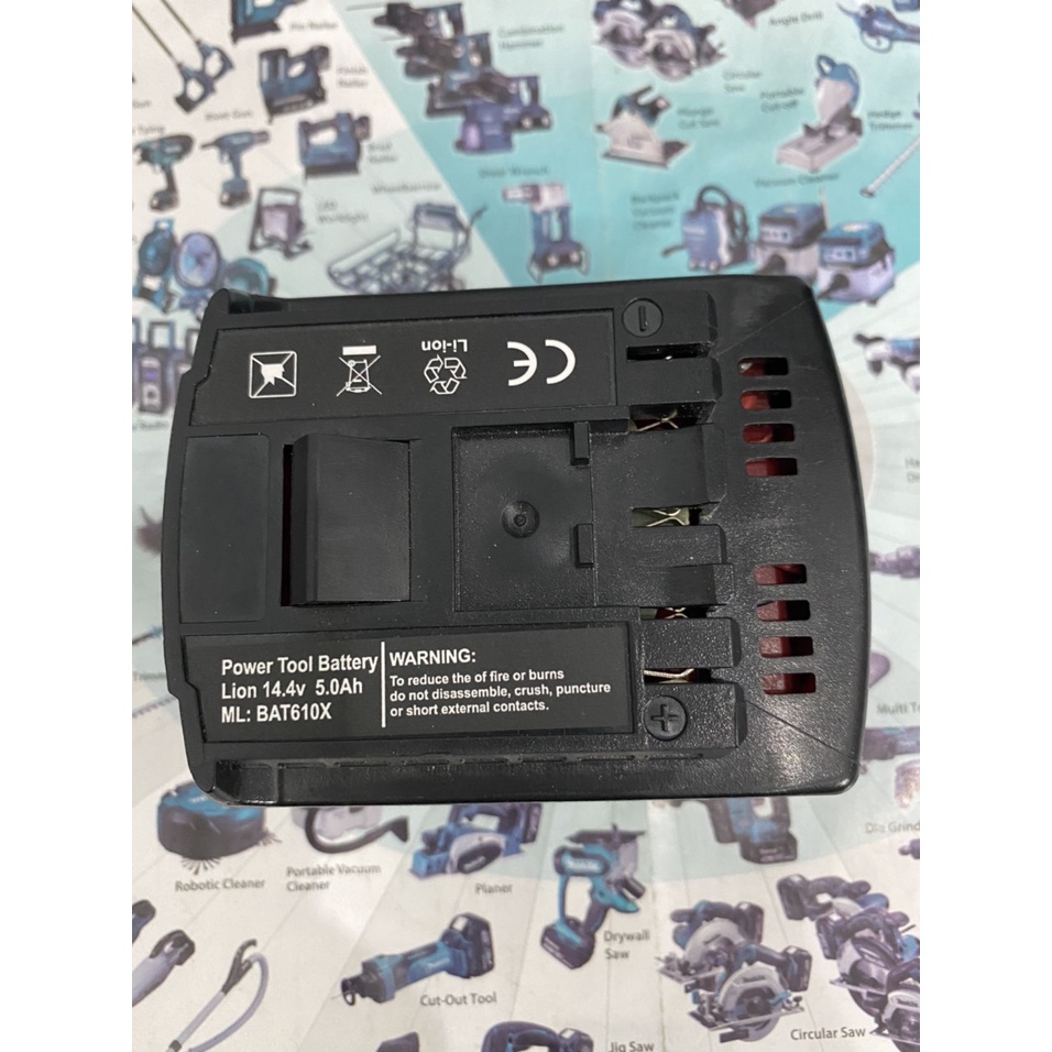 Thông tin sản phẩm và sử dụng: - Pin dùng cho máy Bosch 14.4V Li-ion ** Điện áp pin 14.4V - Loại pin: Li-ion 4S-2P - Có đèn báo pin tiện lợi + Dung lượng pin 4,0 Ah & 5,0Ah, 6Ah + Sử Dụng cell + Chiều dài 100 mm + Chiều rộng 75mm + Chiều cao 40mm + Trọng lượng 0,60 kg Có điện thế pin là 14.4V mạnh mẽ, dung lượng pin 4.0Ah & 5.0Ah &6Ah cho thời gian sử dụng lâu dài. Pin Li-ion có tuổi thọ sử dụng cao, bền bỉ. Khi lắp vào máy khoan pin giúp máy làm việc không dây rất hiệu quả, thời gian sử dụng pin lâu.