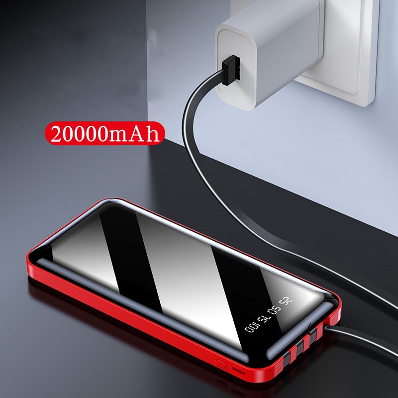 Điện Thoại & Phụ Kiện > Pin Dự Phòng > 10.001 - 20.000 mAh > Pin sạc dự phòng 20000mAh YM276S 4 cổng kết nối nhỏ gọn di động tích hợp dây cáp sạc tiện dụng tương thích Android/IOS