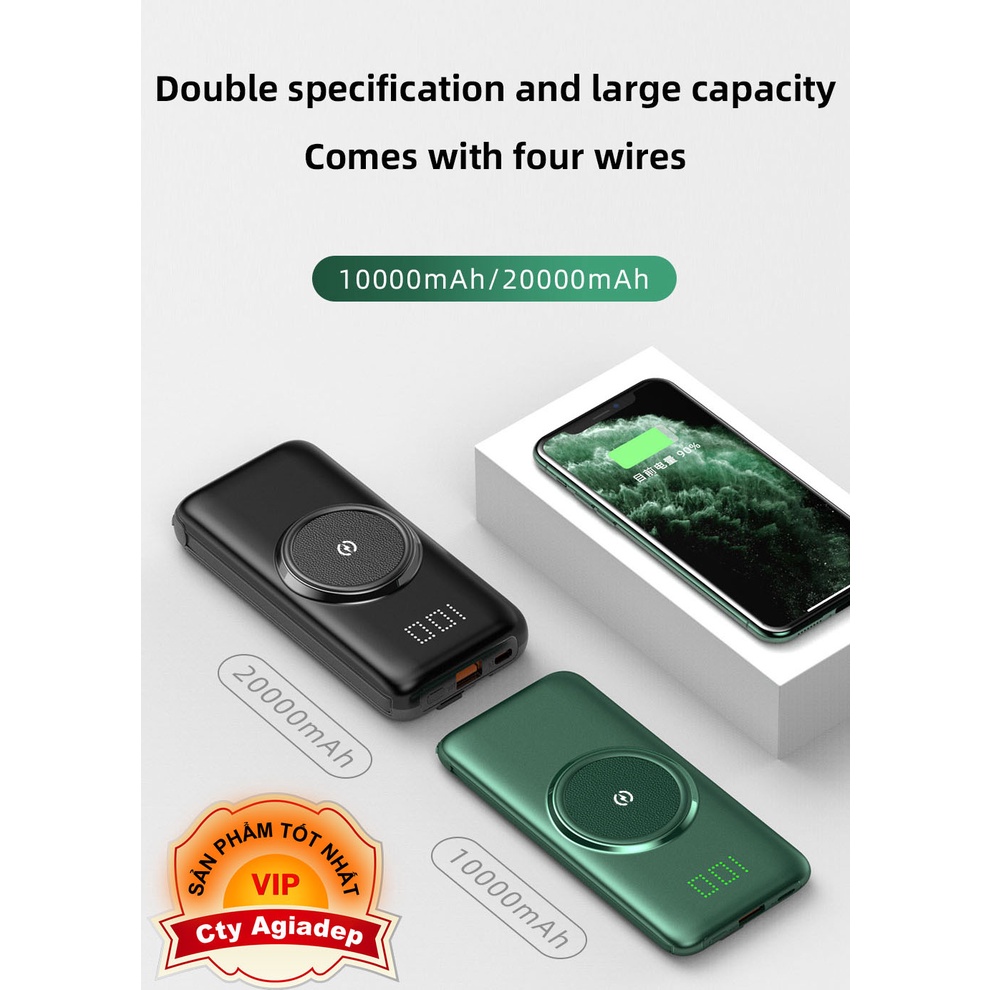 Pin sạc dự phòng AGD SuperPower 10000MAh - 20000MAh Không Dây Di Động Powerbank 4 Cáp cho mọi loại điện thoại