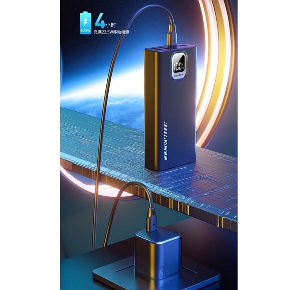 Pin sạc nhanh 22.5W max, pin con voi màn hình LED và 2 dây cáp liền WEKOME 335 20000mAh Phù hợp mọi loại điện thoại ƯU ĐIỂM: 👉Dung lượng lớn 20000mAh phục vụ nhu cầu sử dụng 👉Có màn hình LED hiển thị dung lượng pin 👉 Có 2 dây sạc liền type C và iph, 3 cổng input và 3 cổng output 👉 Sạc nhanh PD 20W + QC3.0 22.5W max