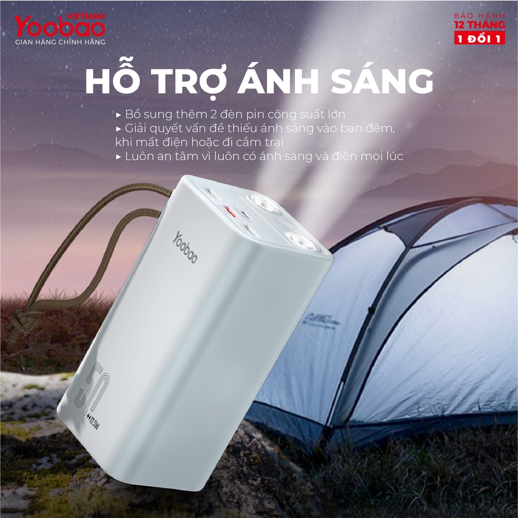 Trạm sạc dự phòng 50000mAh Yoobao H5 Sạc nhanh QC 3.0, PD - Kèm đèn PIN - Hàng chính hãng - Bảo hành 12 tháng