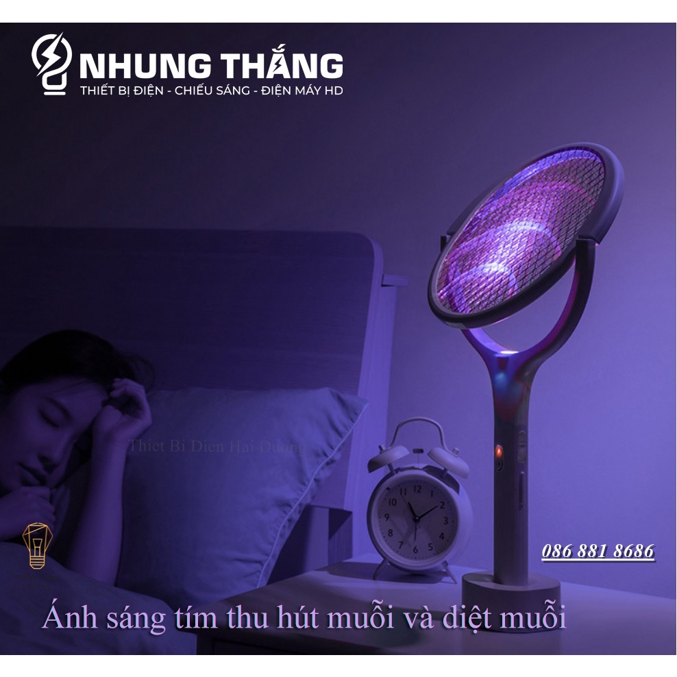 Giới thiệu [PIN TRÂU] Vợt Bắt Muỗi AN01 Kiêm Đèn Thu Hút Muỗi - Diệt Muỗi Để Bàn - Treo Tường Tiện Lợi - Đầu Xoay 90 Độ