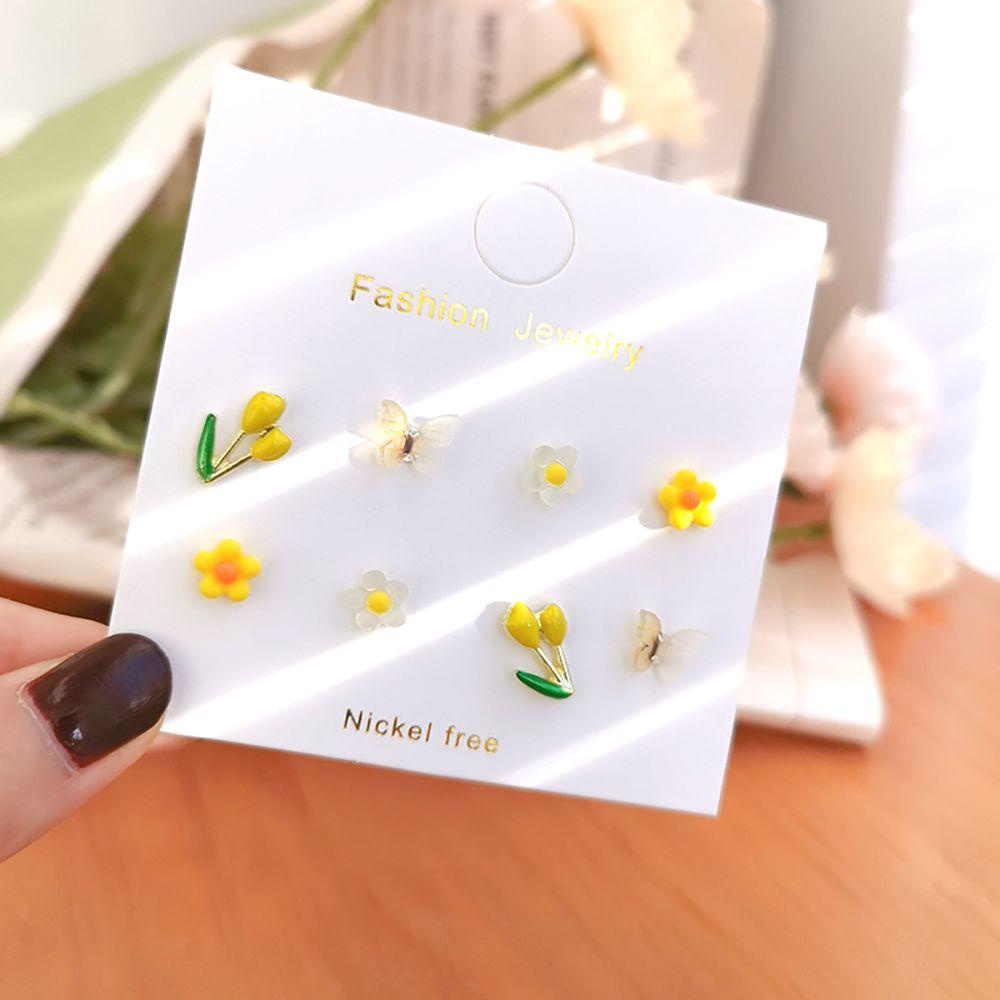 Loại bông tai ' Bông tai đinh tán Hoa tai Bộ phụ nữ Hoa tai đinh tán Hoa tai phong cách Hàn Quốc Trang sức thời trang Hoa Tulip Bướm hợp kim Nữ Cô gái Đảng Tính cách Đơn giản Ngọt ngào Dễ thương Đáng yêu 4 đôi
