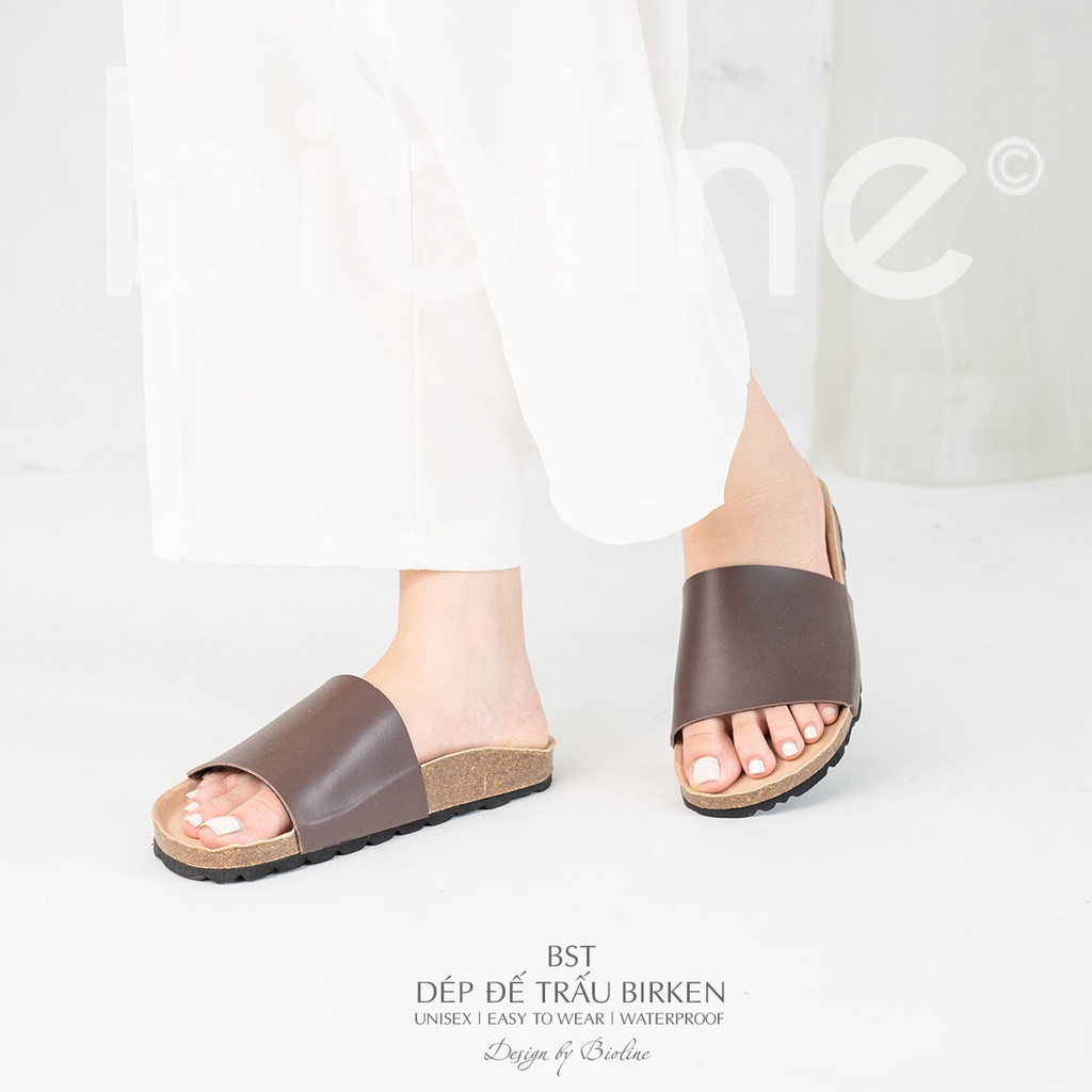 PUK05 - CHỐNG NƯỚC - Dép đế trấu Birken nam nữ Unisex, quai ngang, da PU cao cấp, dép công sở chính hãng Bioline