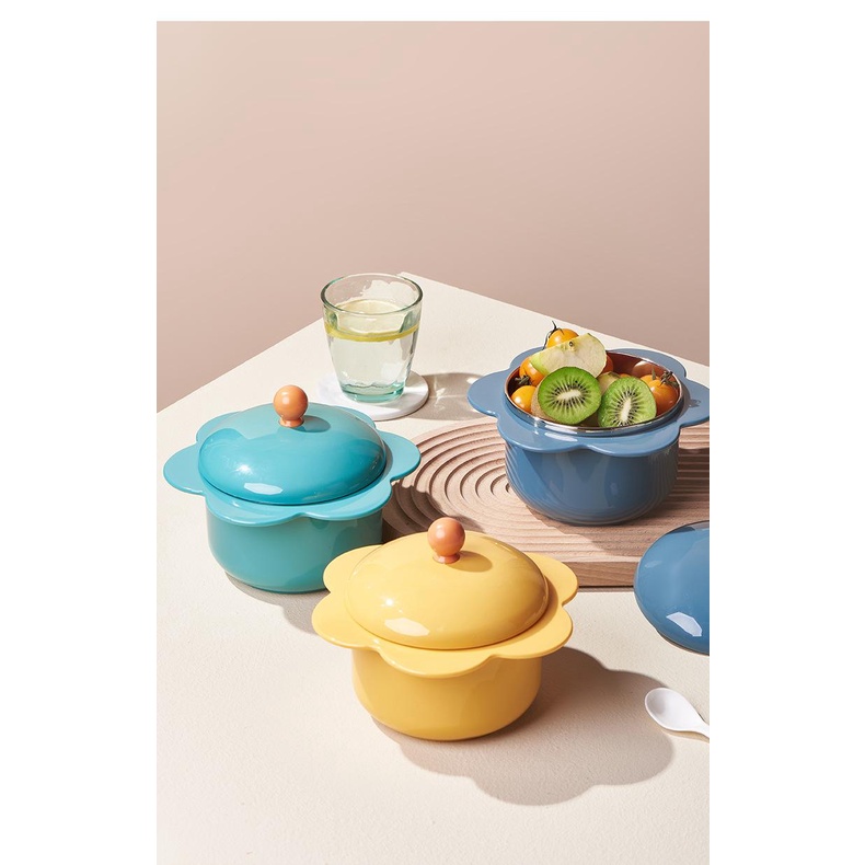 Giới thiệu PVN49449 Bát ăn mì tôm inox 2 lớp cách nhiệt hình bông hoa có nắp đậy Giá Rẻ