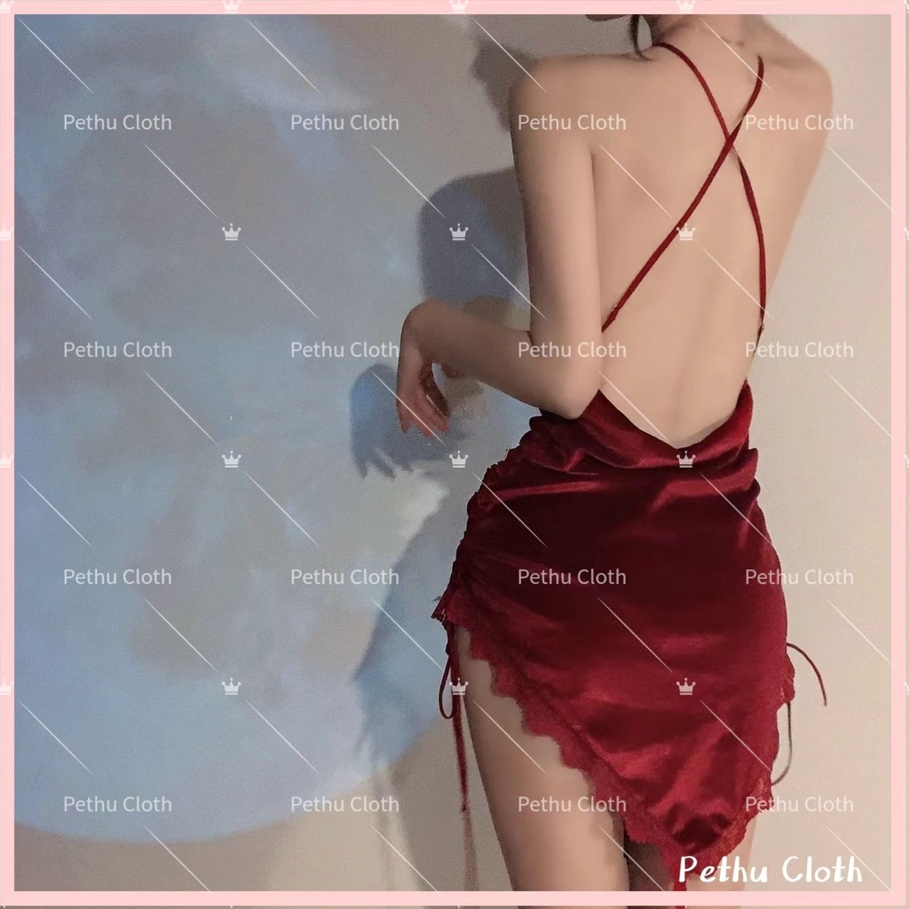 Giới thiệu (Q1,HCM)Đầm/ Váy ngủ nữ2 dây ren cao cấp Đầm mặc nhà gợi cảm quyến 40-65kg--014