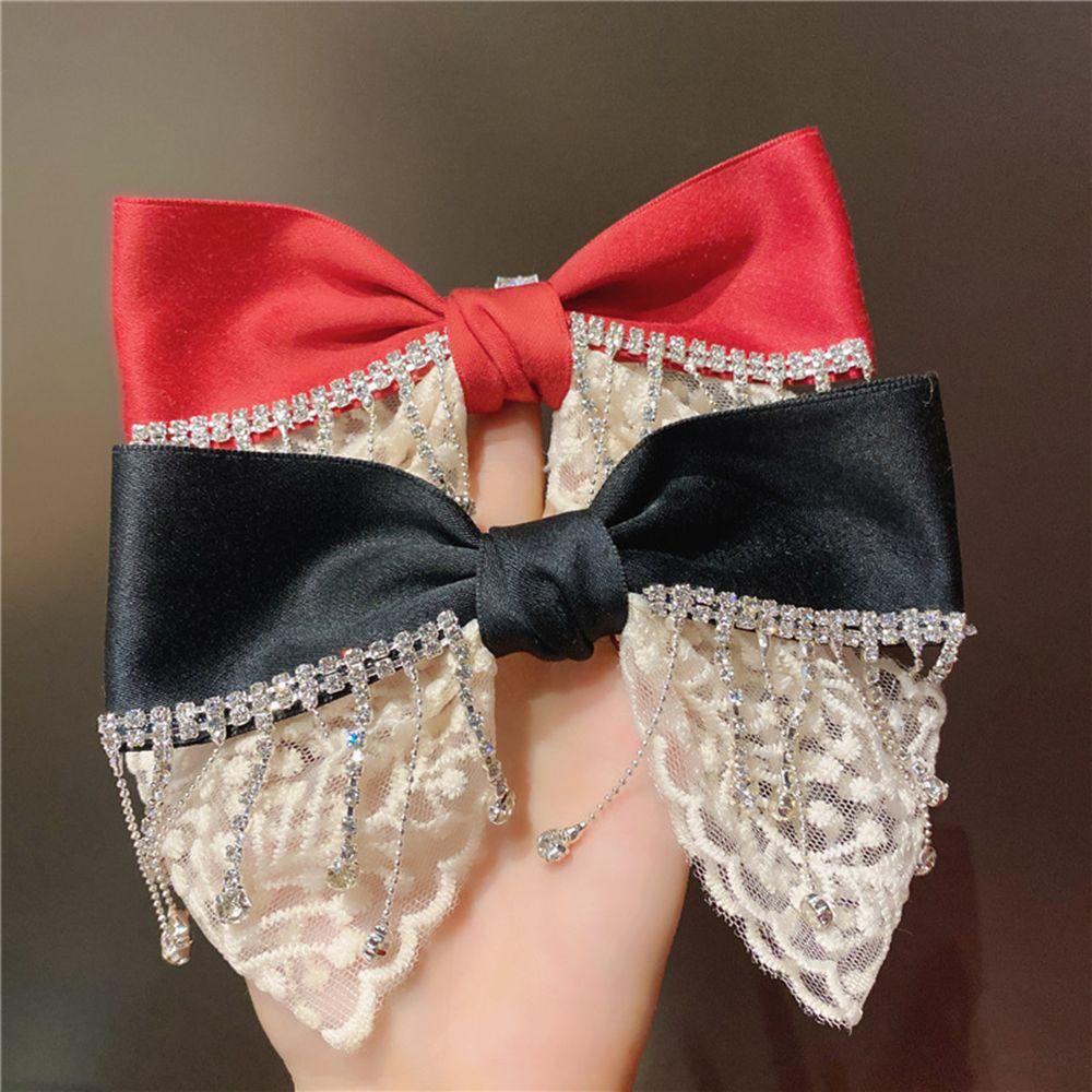 Giới thiệu QQMALL Kẹp Tóc Nơ Đính Đá Phối Ren Xinh Xắn Cho Nữ