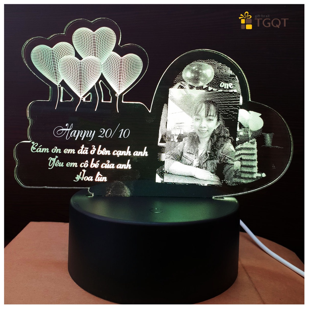 Quà Sinh Nhật Cho Nữ, Quà Tặng Bạn Gái - Đèn Ngủ 3D Khắc Hình Và Chữ Theo Yêu Cầu