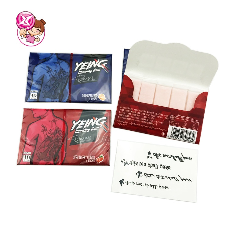 Giới thiệu [ Quà tặng ] Combo 5 gói kẹo Cao su tặng kèm hình xăm 3D hương vị dâu tây / cam ăn vặt thơm miệng hình xăm đẹp