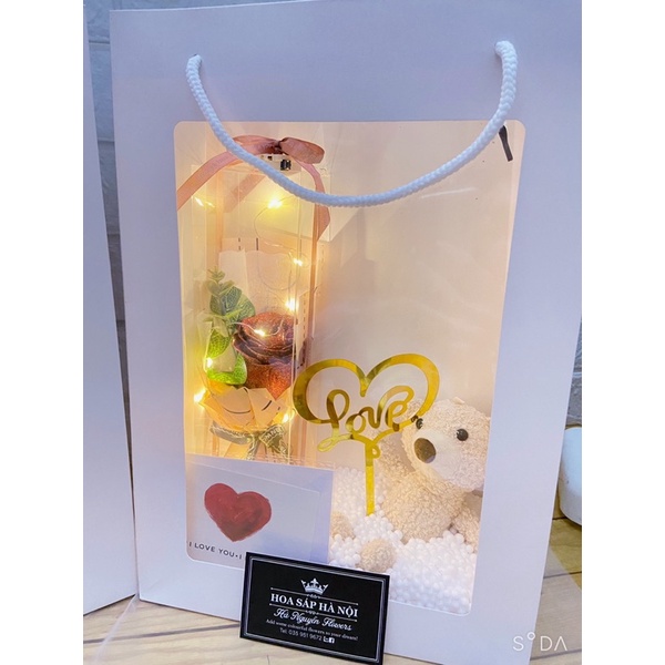 Giới thiệu [QUÀ TẶNG SINH NHẬT-Quà kỉ niệm ]_Hộp hoa hồng nhũ đèn mica tặng kèm túi sách và thiệp
