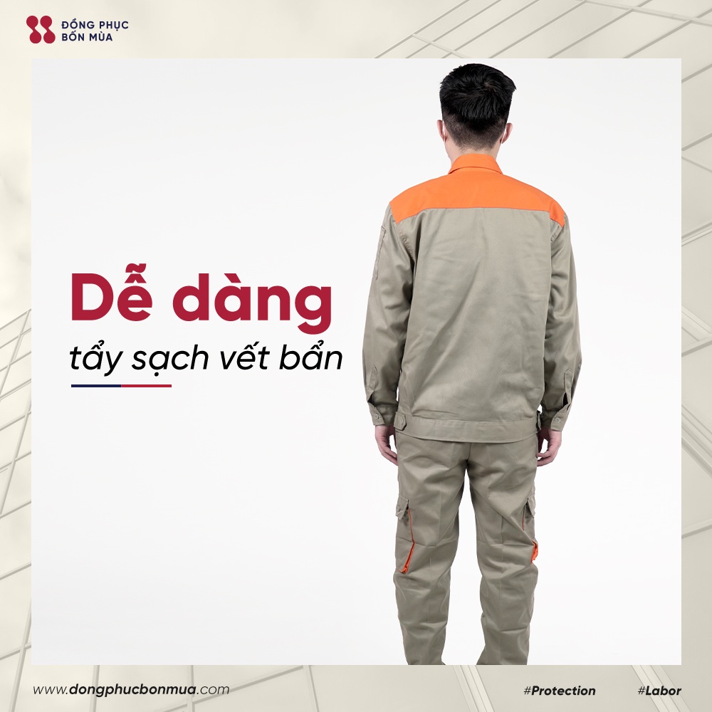 Giới thiệu Quần áo bảo hộ lao động thương hiệu DONGPHUCBONMUAOFFICIAL chất vải kaki màu be phối đen mẫu mới