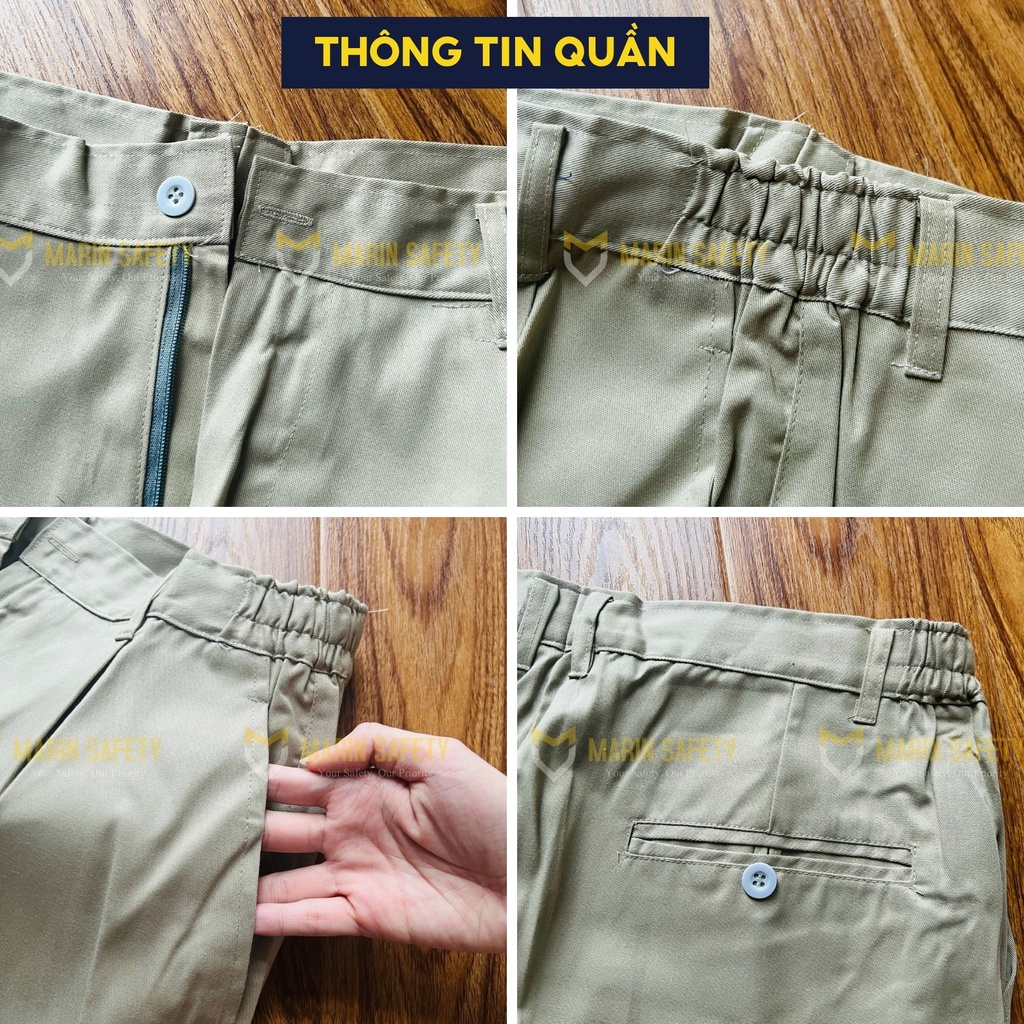 ĐẶC ĐIỂM NỔI BẬT - Thiết kế đơn giản, khuy cài tiện lợi, gọn gàng, thoải mái khi mặc - Đường chỉ may tỉ mỉ, chi tiết, chắc chắn - Mặc rất mát mẻ, thông thoáng, chống nắng nóng, thấm hút mồ hôi nhanh chóng - Chất liệu vải kaki không nhăn, không nhàu, không xù, khó bám bụi - Đảm bảo an toàn cho người lao động với khả năng hạn chế đến 95% các tác nhân gây hại ngoài môi trường như: nắng nóng, tia UV, bụi bẩn,... - Quần áo bảo hộ phù hợp với những người làm việc trong các môi trường như: công trường xây dựng, công trình giao thông, phân xưởng nhà máy,...