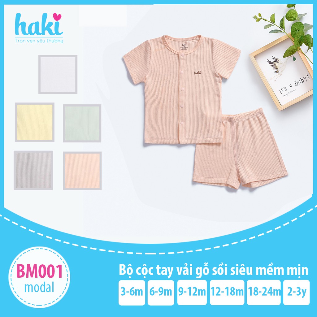 Giới thiệu Bộ quần áo cộc tay cài giữa cho bé vải sồi (Modal) cao cấp siêu mềm mịn HAKI BM001
