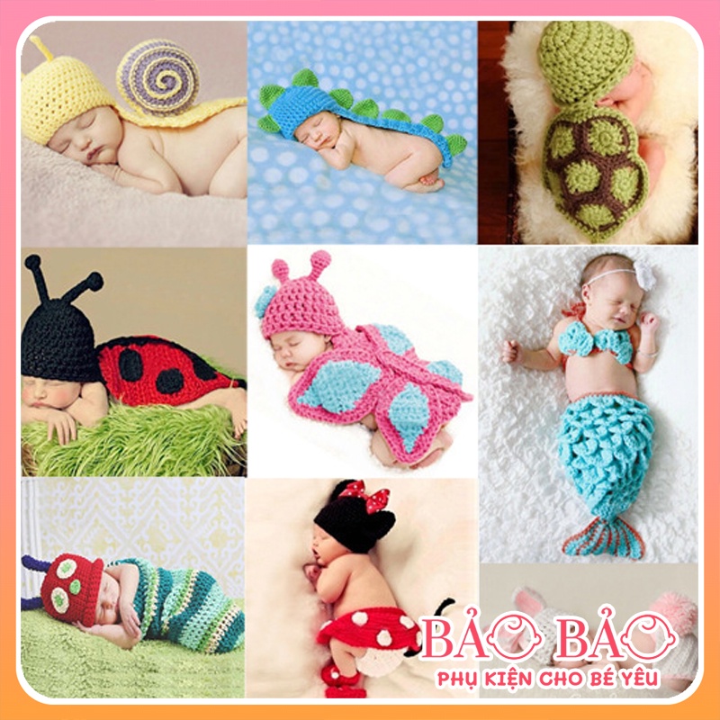 Bộ quần áo len thủ công hình động vật đáng yêu chụp ảnh cho bé 0-6 tháng phụ kiện chụp ảnh cho bé