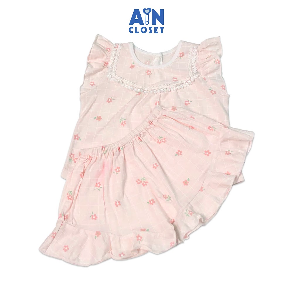 Giới thiệu Bộ quần áo ngắn bé gái họa tiết hoa Hải đằng hồng quần váy thun giấy - AICDBGF0GHFB - AIN Closet