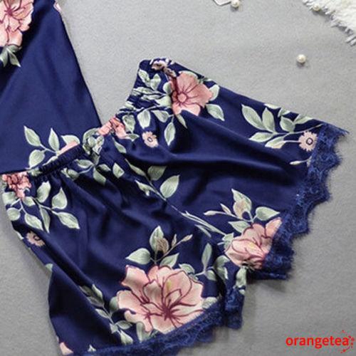 Giới thiệu Bộ quần áo pajamas ngắn chất liệu vải lụa họa tiết hoa thời trang quyến rũ cho nữ