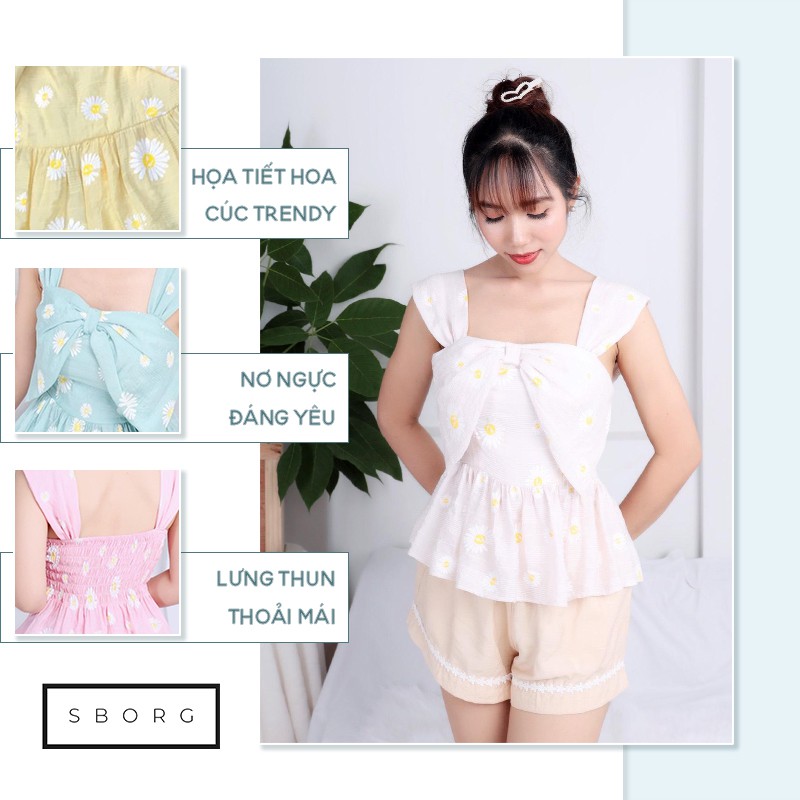 Giới thiệu Quần áo thời trang SBORG set đồ nữ đi chơi xô hàn áo 2 dây nơ ngực hoa cúc freesize dưới 57kg quà tặng vợ