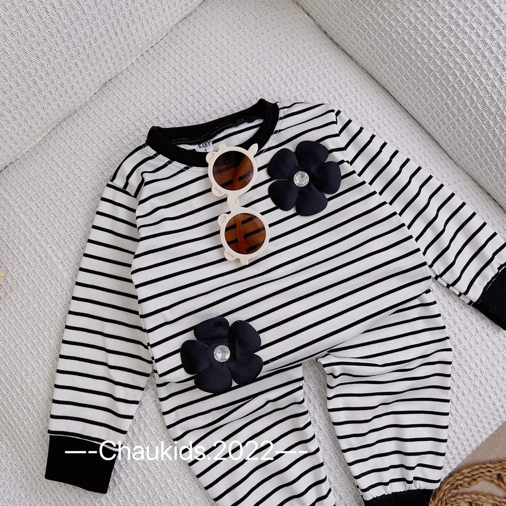 👉🏻chất cotton zip hàn, set kẻ ngang đen trắng phối hoa nổi siêu dễ thương kết hợp cổ viền, bo đen nổi bật, set này không xinh thì còn set nào nữa các tình yêu