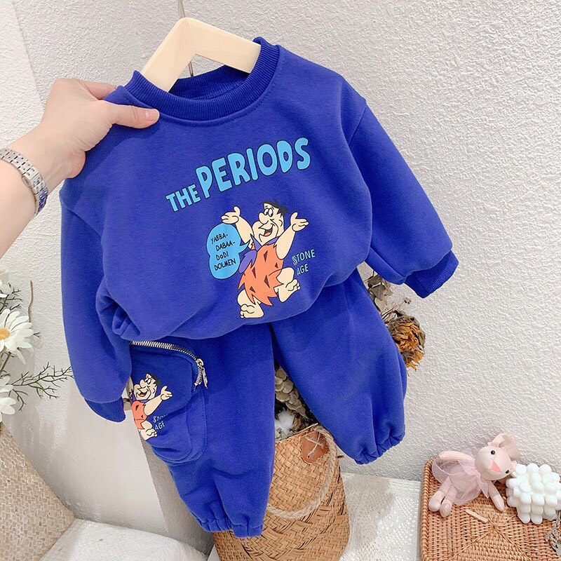 Bộ quần áo thu đông gồm áo phông nỉ dài tay PERIODS họa tiết hoạt hình và quần dài jogger túi hộp cho bé trai 8-20 kg