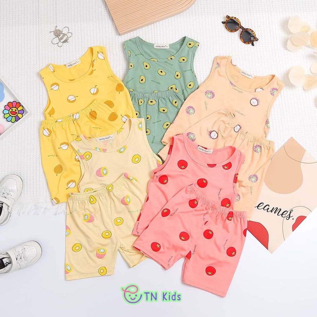 Quần áo trẻ em, bộ sát nách thun lạnh bé trai bé gái in hình hoa quả, áo thun nam, áo thun nữ