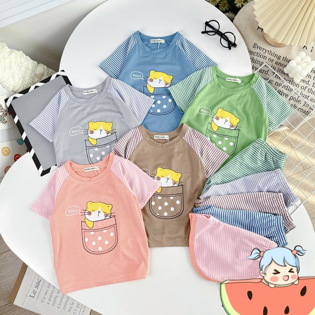 Giới thiệu Quần áo trẻ em MINKY MOM, bộ cộc tay thun lạnh cho bé trai, bé gái in hình khủng long