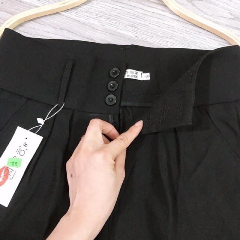 Giới thiệu Quần baggy nữ lưng cao 3 khuy vải tuyết mưa dày dặn không nhắn dáng dài mặc đi học đi làm M08