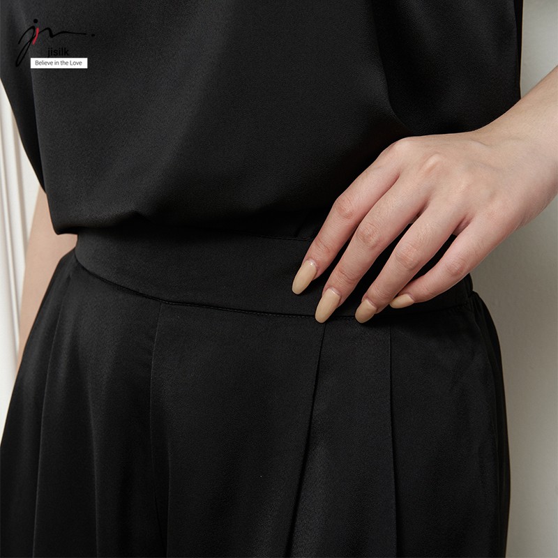 Giới thiệu Quần basicci chất liệu satin thiết kế dáng suông ống rộng mặc nhà đi chơi Jisilk L.QDA-01