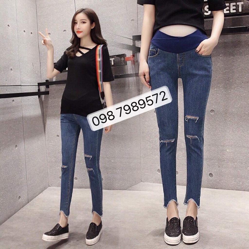 THÔNG TIN SẢN PHẨM: Quần bầu jean thật rách gối xì teen năng động siêu xinh co dãn tốt (kèm ảnh thật) - Tên Quần bầu thời trang : - Quần bầu chất liệu : jean co giãn thoải mái, quần có chun điều chỉnh, - Quần bầu có đủ size : từ 40-90kg tùy mẫu - Quần bầu có đủ màu : đen và xanh