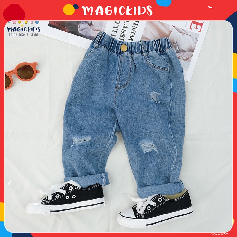 Thời Trang Trẻ Em > Trang phục bé trai > Quần bò > Quần dài bé trai Magickids chất jean rách gối cao cấp dáng baggy form rộng cho bé đi học đi chơi Quần áo trẻ em QD22019