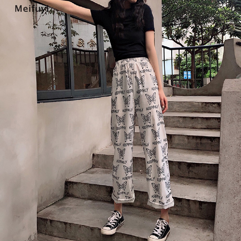 Giới thiệu Quần Dài Dáng Rộng Lưng Cao Đến Mắt Cá Chân In Họa Tiết Đồ Họa Phong Cách Harajuku Hàn Quốc