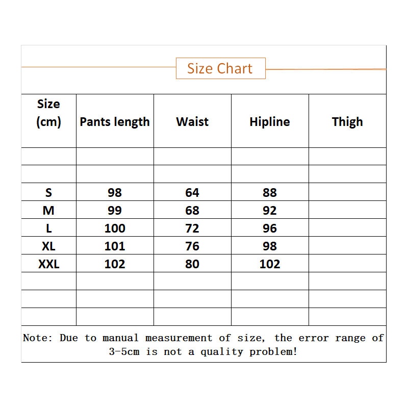 Xxl: Chiều dài quần: 102 Vòng eo: 80 Hông: 102