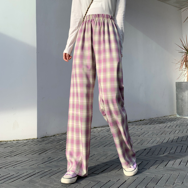 Giới thiệu Quần dài RENJIANVSHENG lưng thun họa tiết caro kiểu dáng thời trang nữ tính
