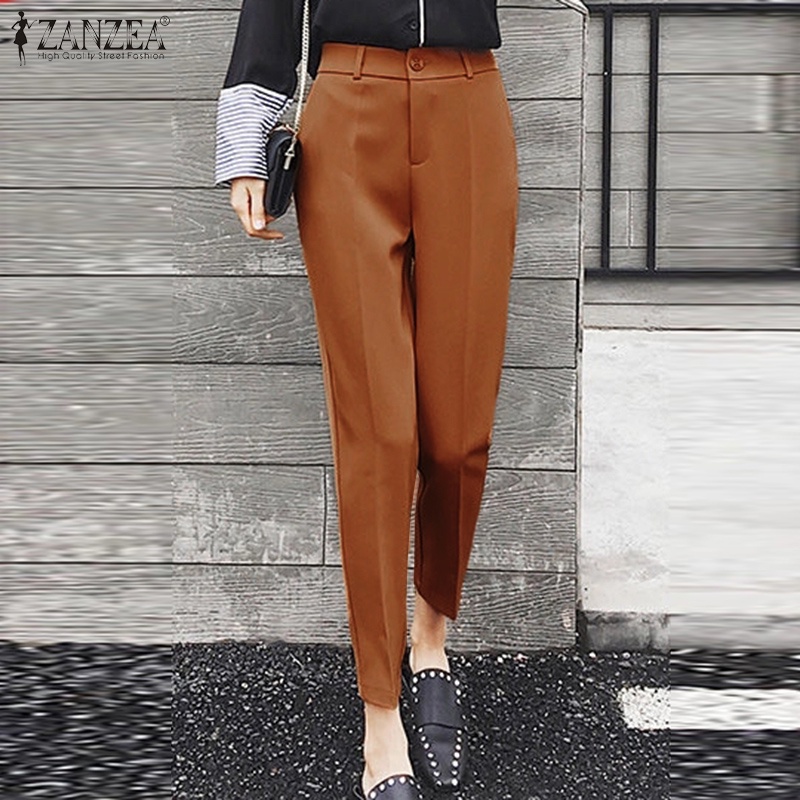 Giới thiệu Quần dài ZANZEA màu trơn có khóa kéo trước thời trang Hàn Quốc cho nữ