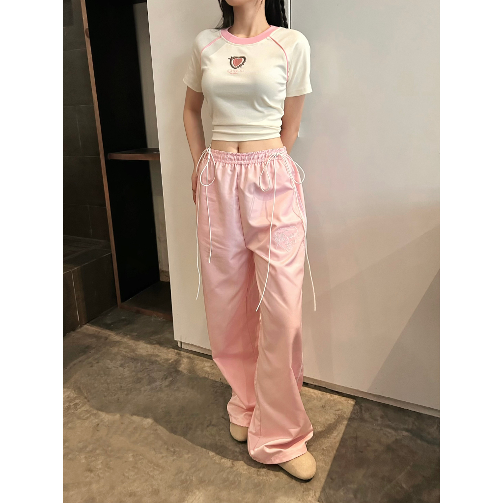 Giới thiệu Quần dù dài ống rộng Kill System Sunny màu hồng thắt nơ 2 bên lai có dây rút