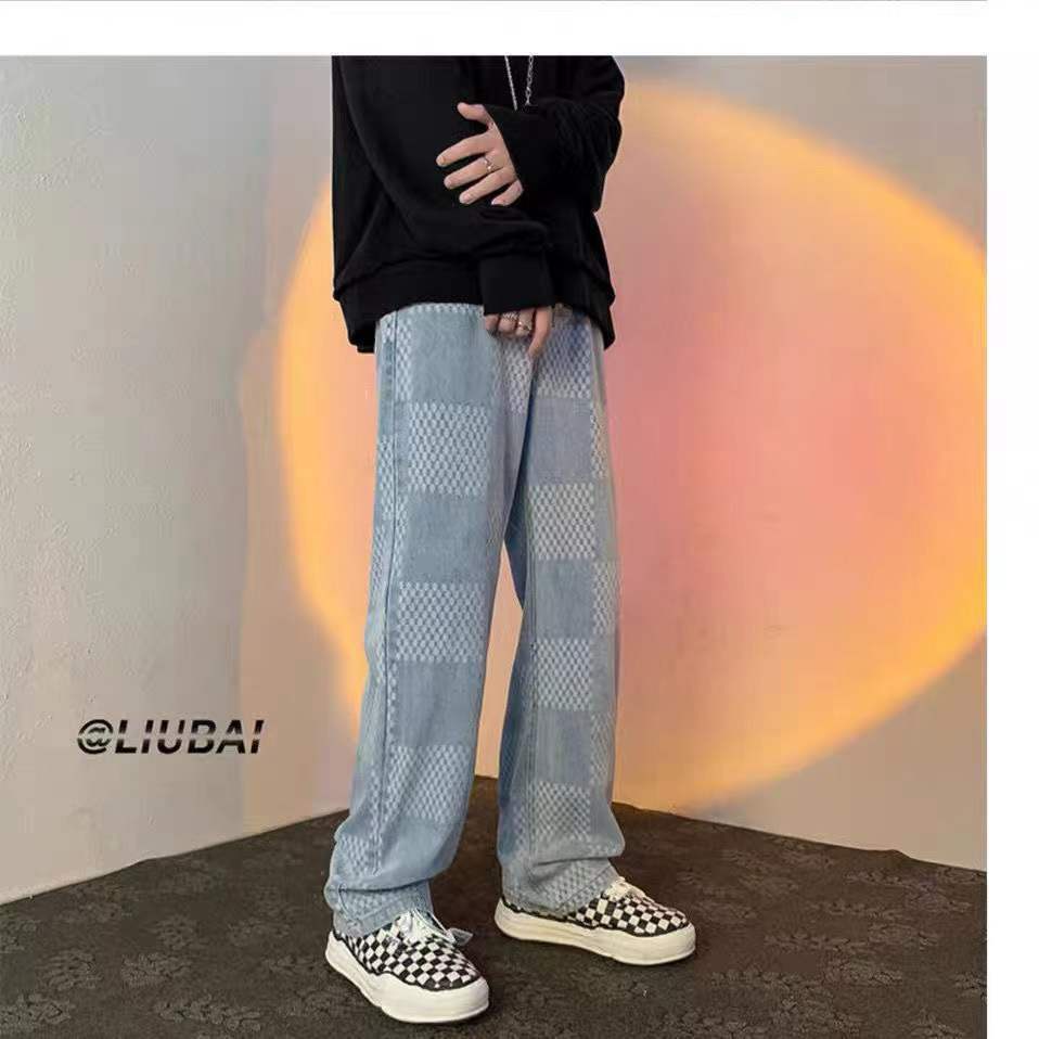 Giới thiệu Quần Jean Dài Ống Rộng Họa Tiết Sọc Caro Phong Cách Mỹ Cá Tính