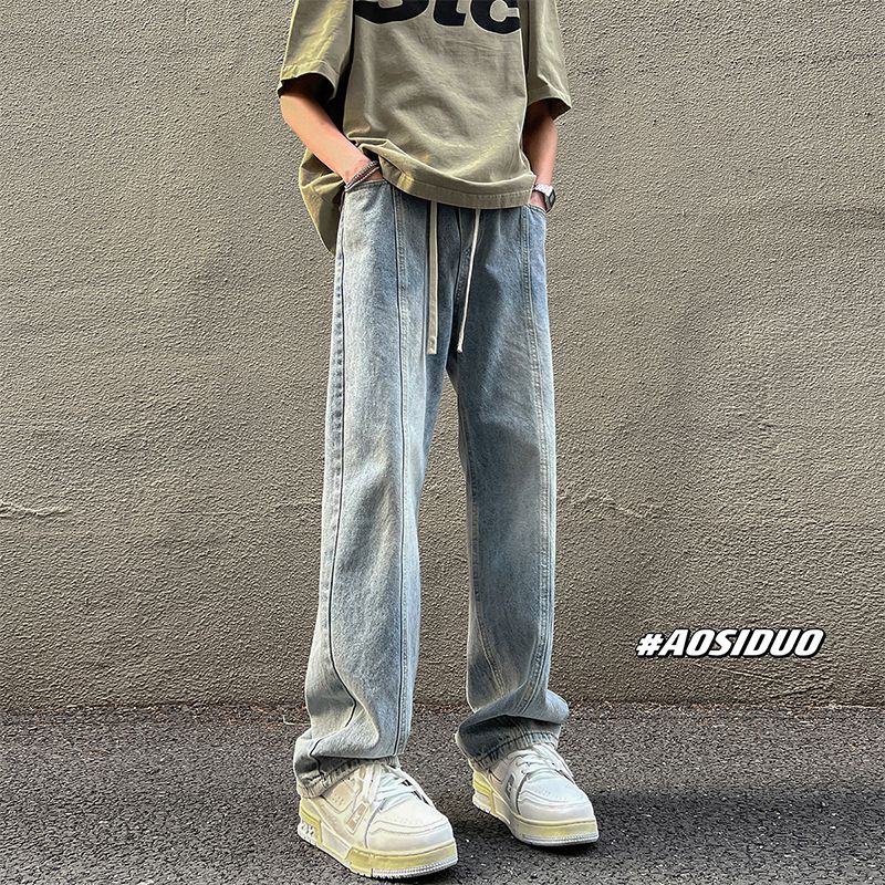 Giới thiệu Quần Jean Dây Rút Dáng Suông Mỏng Phong Cách Retro Mỹ Thời Trang Mùa Hè Cho Nam