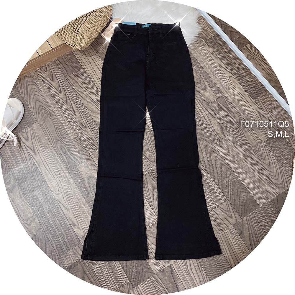 Quần jean đen dài ống pass xẻ lai lưng cao!