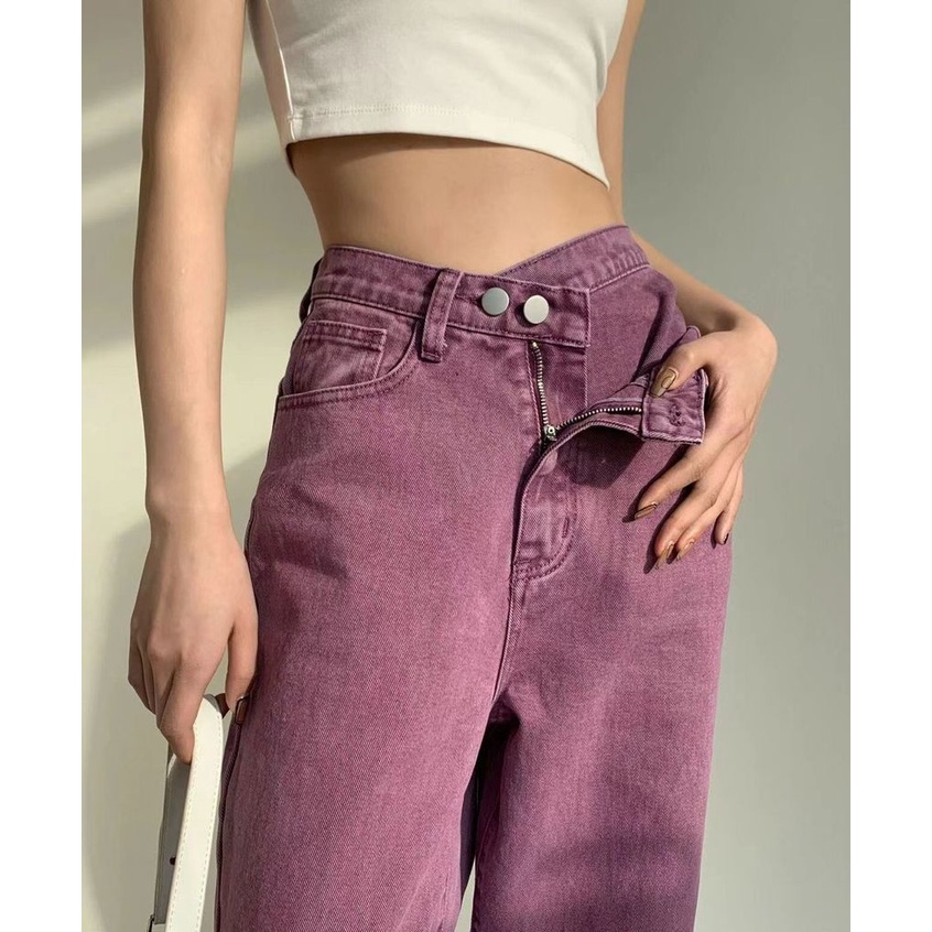 Giới thiệu Quần Jean Lưng Cao Ống Rộng Màu Tím Phong Cách Hàn Quốc Thời Trang Cho Nữ