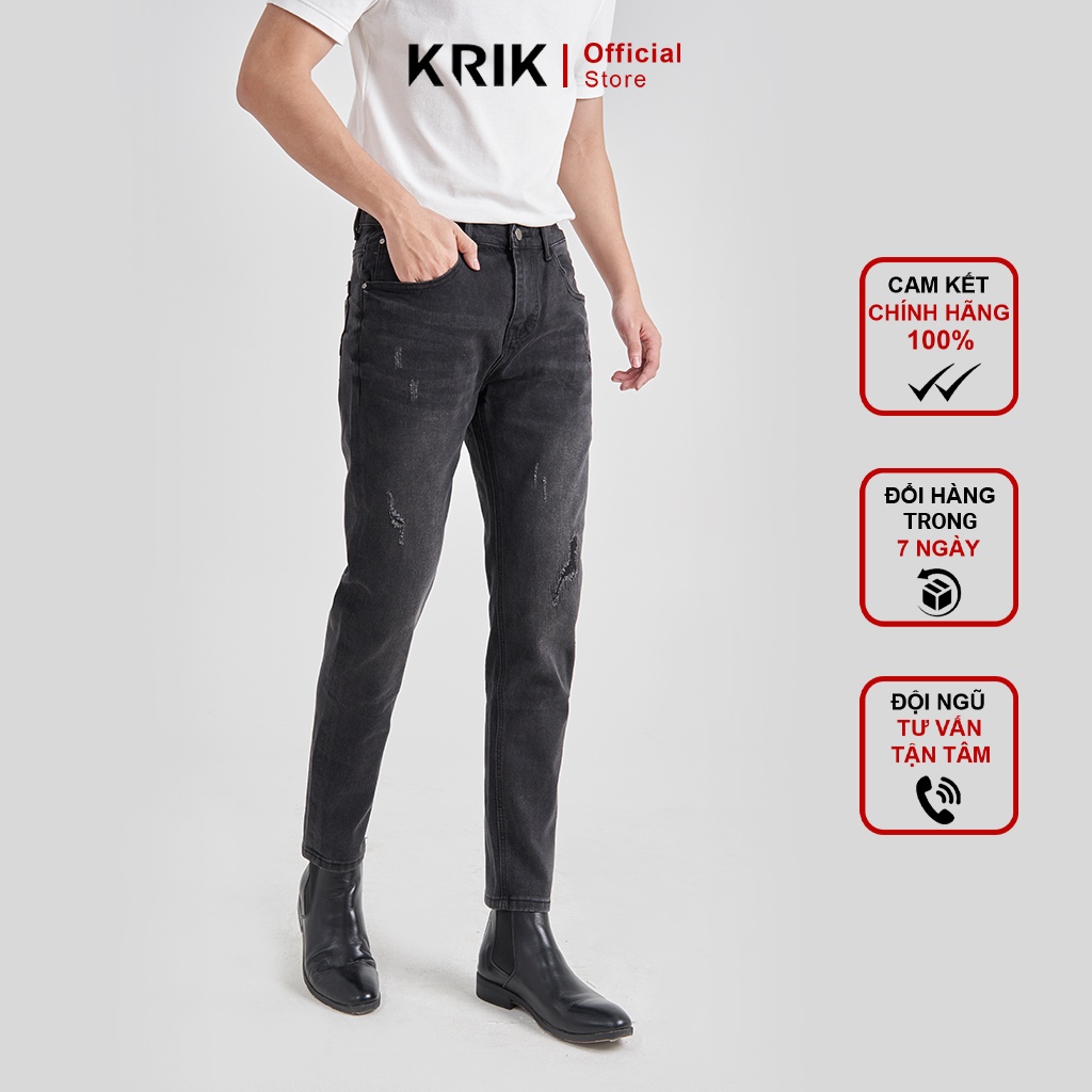 Giới thiệu Quần Jean Nam Local Brand KRIK Dáng Slimfit Hàn Quốc, Màu Đen Rách Xước QJ0379