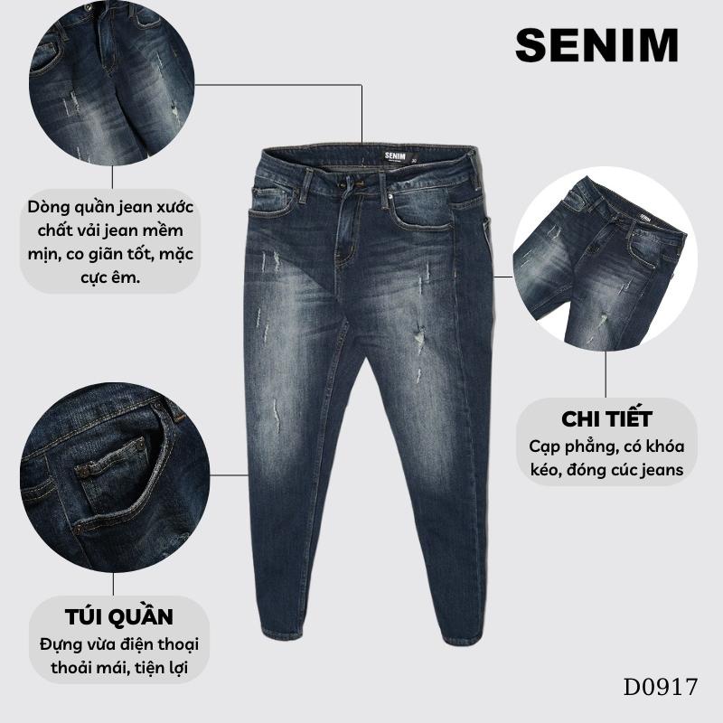 Giới thiệu Quần jean nam SENIM, Quần bò vải Denim dày dặn co giãn, Jean Xanh Rách - Dáng Slimfit