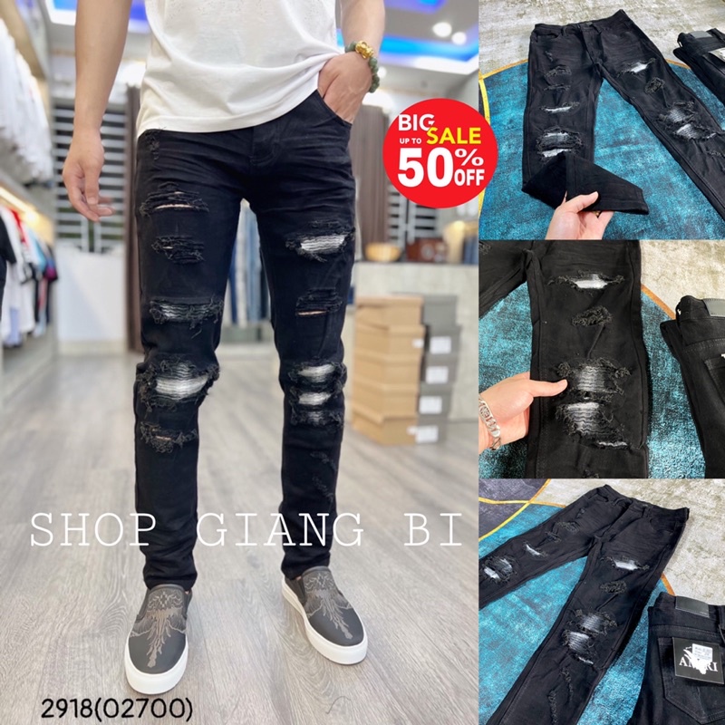 Quần jean nam vá nhăn trắng khâu viền,Quần bò vá da nhăn màu trắng khâu viền amiriGiá DMD