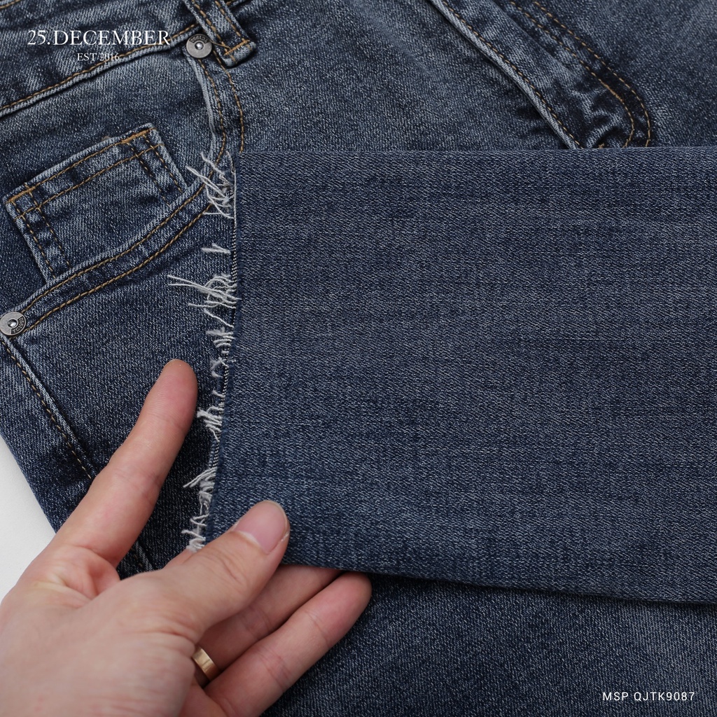 THÔNG TIN SẢN PHẨM - Sản phẩm: Quần Jean nam rách giả, cắt gấu - Mã sản phẩm: QJTK9087 - Thương hiệu: 25.December - Màu sắc: Xanh - Chất liệu: Jeans Cotton - Kiểu dáng: Ôm vừa vặn - Size: 28 - 29 - 30 - 31 - 32 - 33 - 34