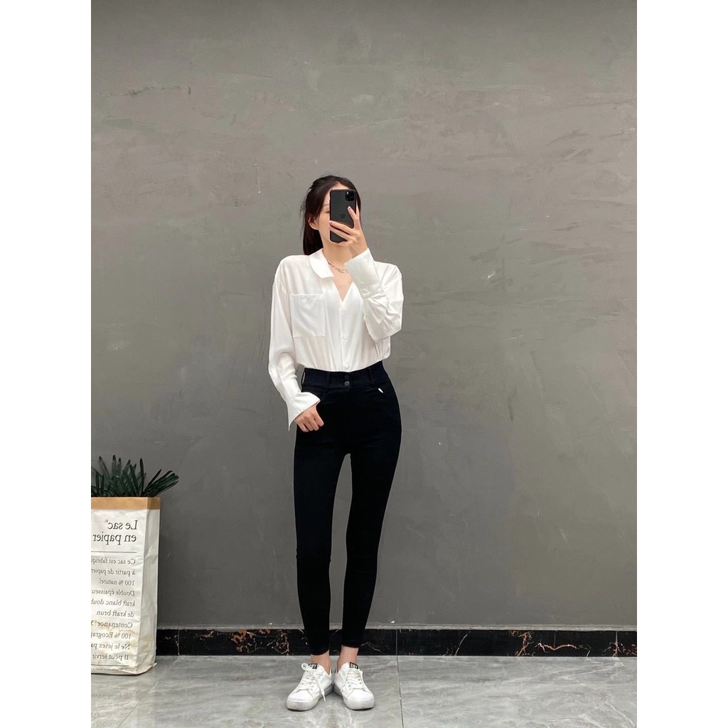 Giới thiệu Quần jean nữ lưng cao CHAT cạp cao ôm 2 khuy vải co giãn đẹp Q026