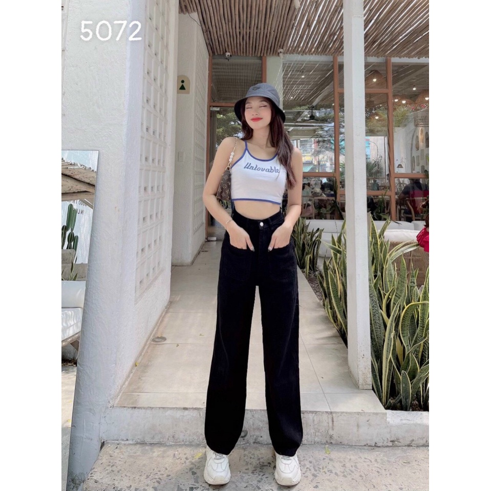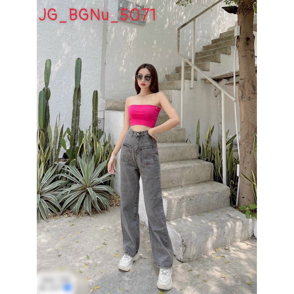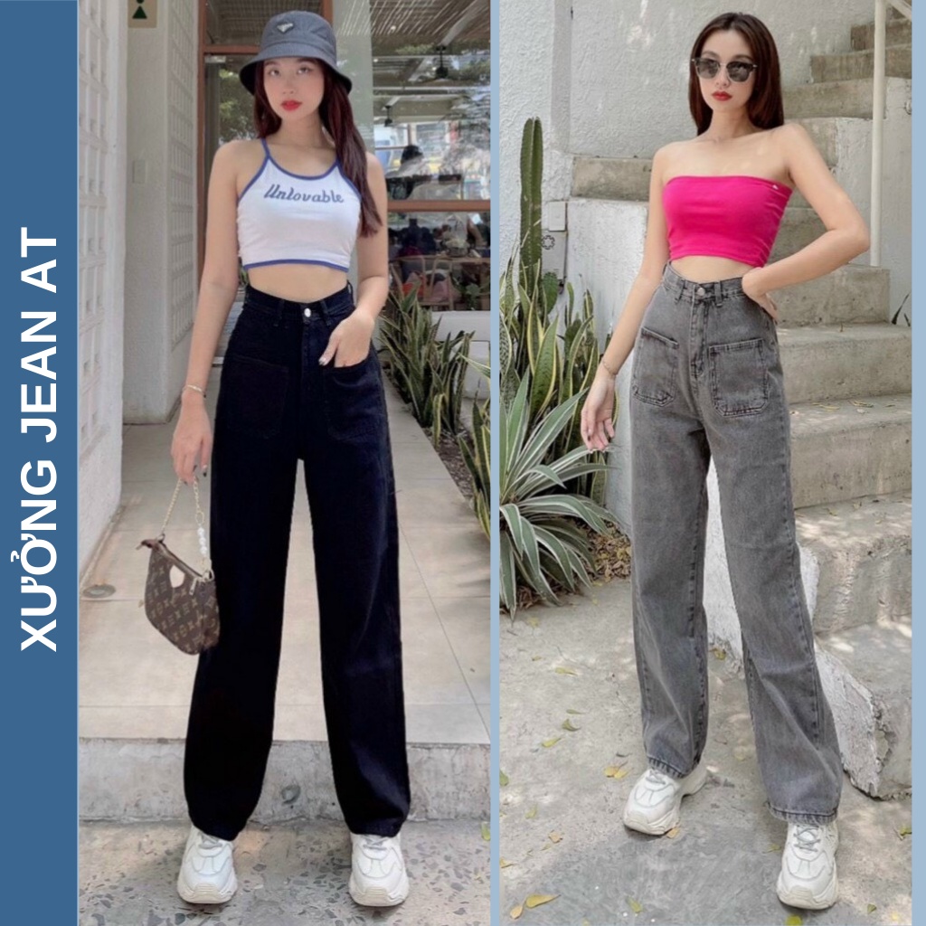 Quần Jean Nữ Ống Rộng Phối 2 Túi Trước Chất Bò Mềm Mịn Lưng Cao Phong Cách Hàn Quốc - 303