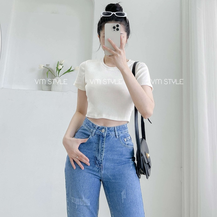 Giới thiệu Quần jean nữ VMSTYLE baggy lưng cao tạo xước dáng suông form đẹp - QJB00009