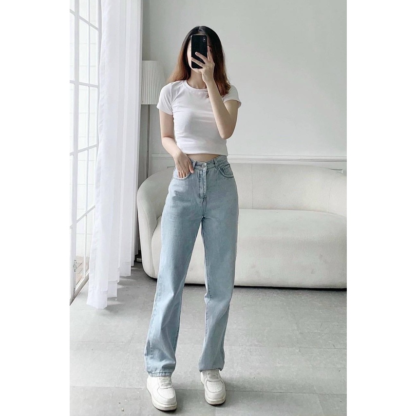 Quần jean ống rộng cạp cao CiCi, Quần bò dáng suông nữ trơn ulzzang cao cấp - CiCi Jeans