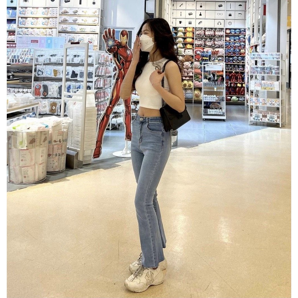 Giới thiệu Quần Jeans bò loe xanh nhạt may gấu mới